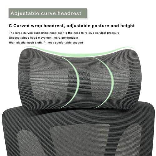 - 【 Adjustable Curved Wrap Headrest 】C Curved wrap headrest, adjustable posture and height. The large curved supporting headrest fits the neck to relieve cervical pressure Unconstrained head movement more comfortable High elastic mesh cloth, fit neck comfortable support. It can relieve neck pressure in time.