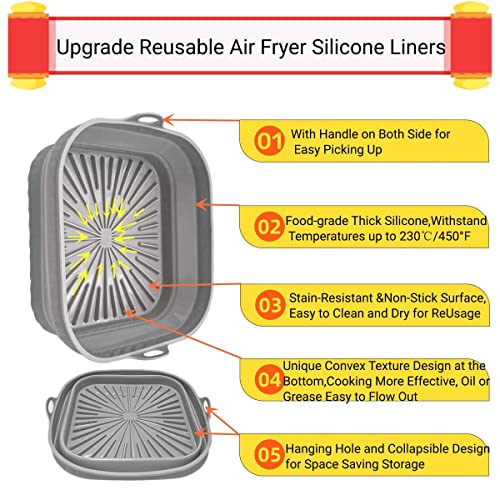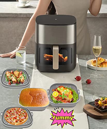 Esbyyewi Collapsible Air Fryer Silicone Liner Reusable 8 Inch Square Foldable Air Fryer Silicone Pot Liner Replacement of Parchment Paper Liner N