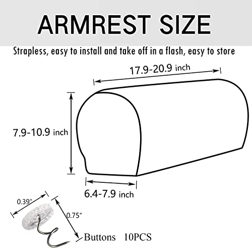 • 🏠【Simple Design】: Size is L: 17.9"-20.9" x W: 6.4"-7.9" x H: 7.9" -10.9", which is suitable for most armrest cover. The color is available with simple design, perfect for any style chair and sofa.