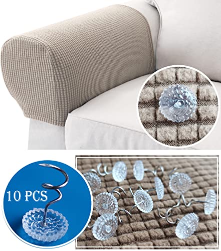 • 🏠【Anti-slip Designs】: The thick fabric can increase the friction. The fabric couch can be secured with buttons. The set provides 10 twist pins for free to fix the armrest covers better. Invisible design, you could insert them in sofa arm without tearing the sofa.