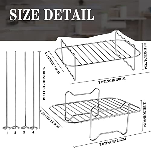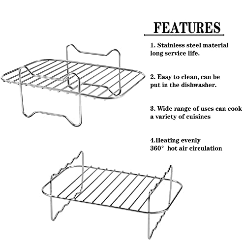 • Air Fryer Accessories: Air fryer rack air fryer accessories set, each of our set includes 1 stainless steel steam grill, 1 stainless steel grill rack and 4 stainless steel skewer. Use the air fryer you love for more. Bake a cake, grill kebabs, air fry a crispy pizza. The possibilities are endless with the air fryer accessory kit.