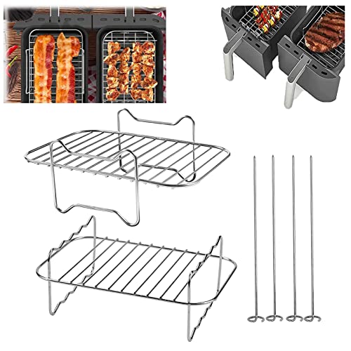 Esteopt 2 Pack Air Fryer Rack Air Fryer Accessories Compatible with Ninja Food Dual Zone Air Fryer [AF300UK] [AF400UK] 304 Stainless Steel, Silve