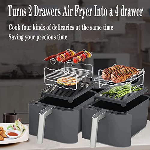 • Level Up Your Air Fryer: This air fryer rack for double air fryer help you make the most of each basket by allowing you to fry, steam, and dehydrate of at least 4 portions of foods while being durable and safe so you can use them with peace of mind