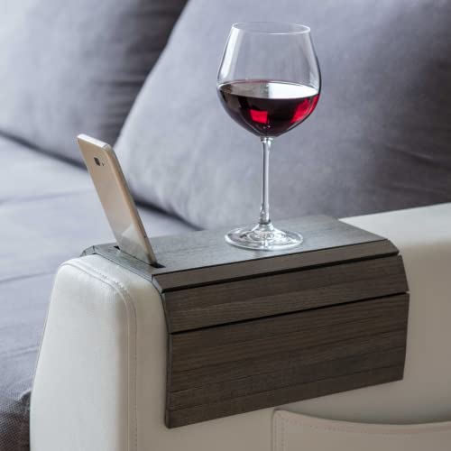 - 💻 Sofa arm is made with fabric or phone holder place that will work on round sofa arms. Also possible sofa arm without any extras included (without phone holder and fabric) you can choose what style you want to have. Please note that sofa arm tray take form of your sofa, s or very narrow or round edge it will not hold glass sturdy.