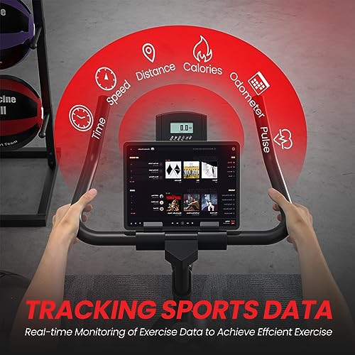 - 【Digital Display and Pad Holder】The LCD display on the indoor cycling bike tracks speed, time, calories burned and odometer.Pad holder allows you to watch video or music while you move, making it easier to keep exercising.