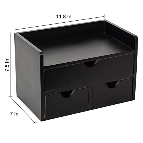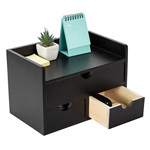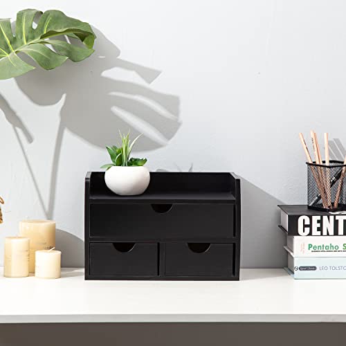 - Multifunctional Storage: This versatile desk organizer provides ample storage space, featuring 1 larger drawer for storing letters, mail, notebook, and paper, 2 bottom drawers for paper clips, scissors, staples, staplers, rulers, tape, and many other office essentials, and 1 top shelf space for holding your cellphone, clock, calculator, calendar and for showcasing potted plants and other smaller decors.