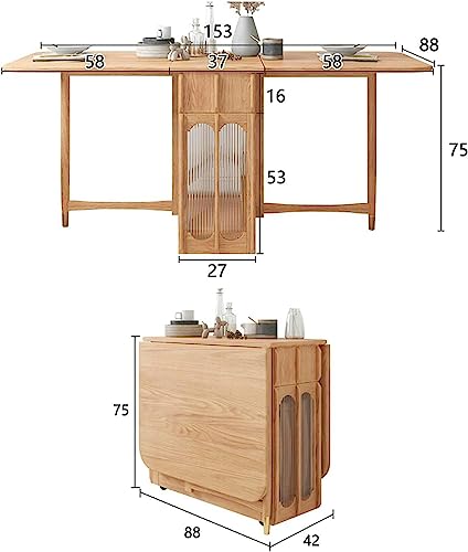 • 【Space Saving】Comes with a drawer for condiments, cups and saucers. Daily tableware, etc.; 4 folding dining chairs can be stored in the middle, which can be stored when not in use, which is convenient and practical. It can be used as a computer desk when expanded and a cabinet when folded.