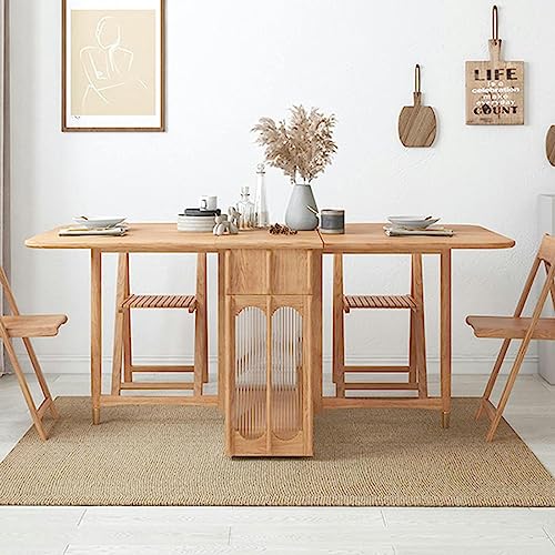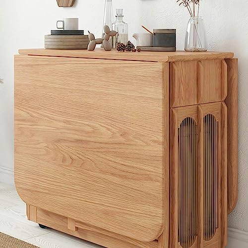 Home Dining Room Furniture Extendable Folding Dining Table, Wooden Drop Leaf Kitchen Table, Round Edge Design, Saving Space, Multifunctional Compact Dining Room Table for R