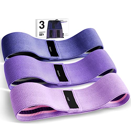 From the manufacturer Benefits of Using Resistance Bands Our 3 levels of exercise band resistance fit everyone who wants to do exercise or build a strong hip. Attached with portable carry bag makes it very easy for you to take it anywhere, help you save time and space. Wider Fabric Bands&Non-Slip Design Wider(8cm) fabric resistance bands is made of high-quality cotton polyester stretch fabric material, and knitting tailoring design which could effectively prevent curling, rolling up, sliding or pinching during your workout, durable and anti-slip. 3 Different Resistance Levels Pink/Light (15-25lbs) Purple / Medium (25-35lbs) Dark Blue/Heavy (40-50lbs). Great for beginners as well as more advanced exercisers to add intensity in basic moves or traditional moves.