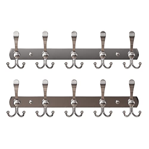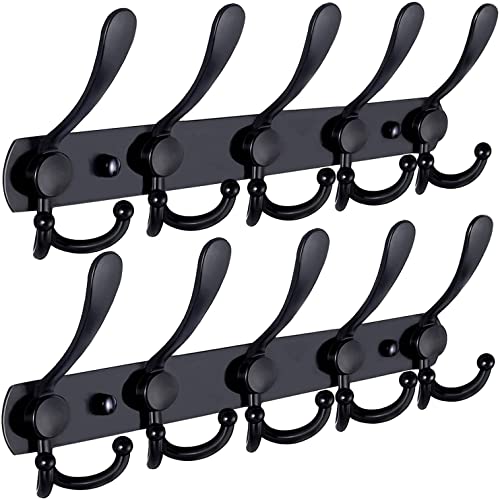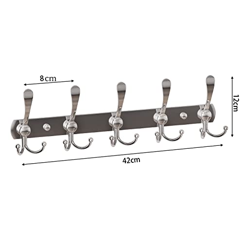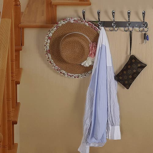 - MULTI-PURPOSE - With 5 tri hooks, the wall mounted coat rack can hold lots.The clothes rail can be mounted in different places such as closets, bathroom, bedroom, hallway, kitchen. Hangers are perfect for hanging bathrobe, bath towel, clothes, backpack, hat, umbrella, kitchen utensils and keys. A very good storage organisation.