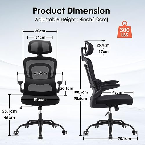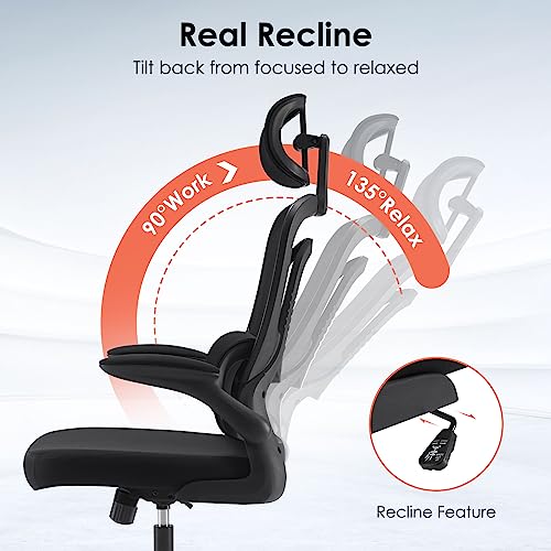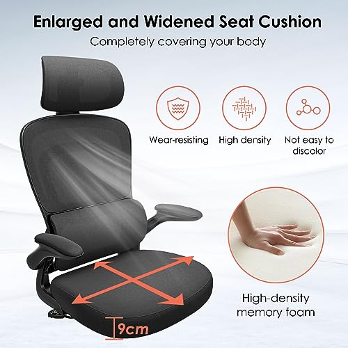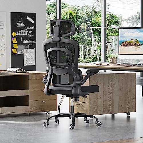 Farini Office Desk Chair with Flip-Up Armrest High Back Ergonomic Computer Chair with Adjustable Headrest and Lumbar Support Executive Swivel Cha