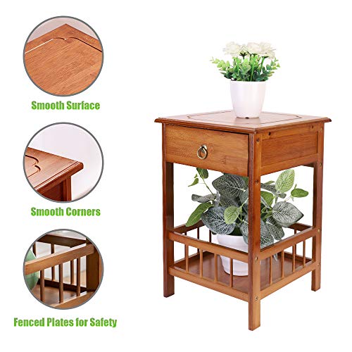 - Whole Solid Bamboo: Side table with drawer is made of thick bamboo,stable and durable,not shake and deform,has a service life of several years.Table surface has double-layer waterproof protection,easy clean.The top table can be place 13 inch laptop or 30kg potted.Minimalist end table design is beautiful,for living room,bedroom,corridor,balconies