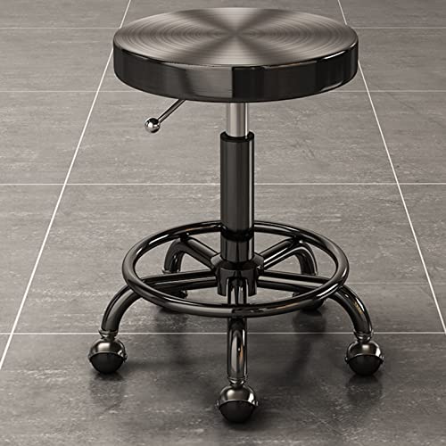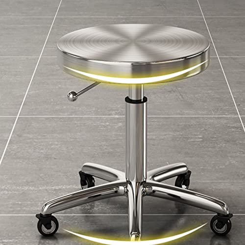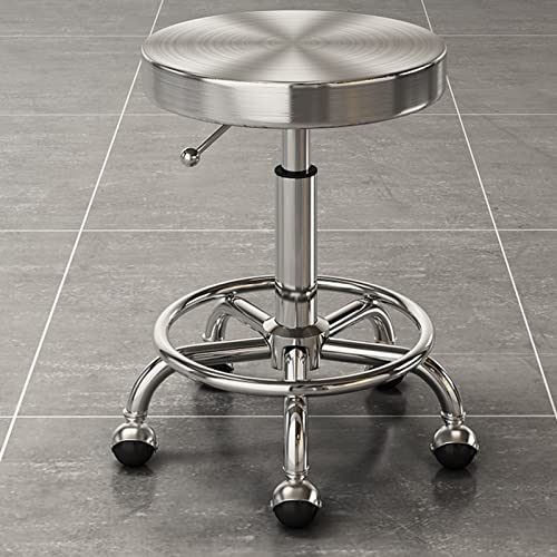 FEHUN Stools,Bar Stool Grey on Wheels Gas Adjustable Swivel Barstool Faux Dressing Stool Dining Chair Table Desk Office Chair Rolling Low Swivel