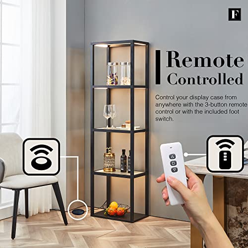 - REMOTE CONTROLLED - Control the brightness of your display case from anywhere with the 3-button remote control or with the included foot switch. Cycle through a full spectrum of brightness to choose your desired lighting.