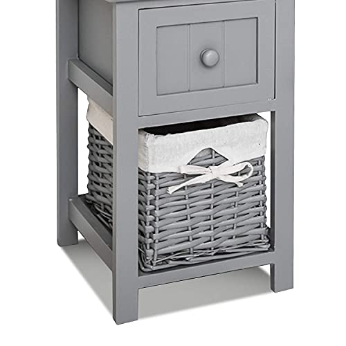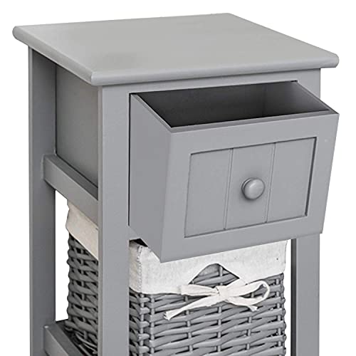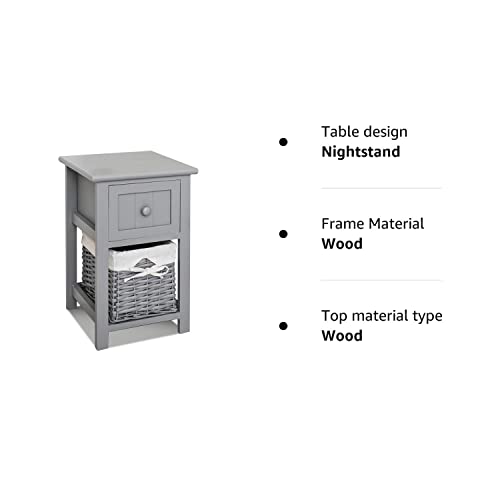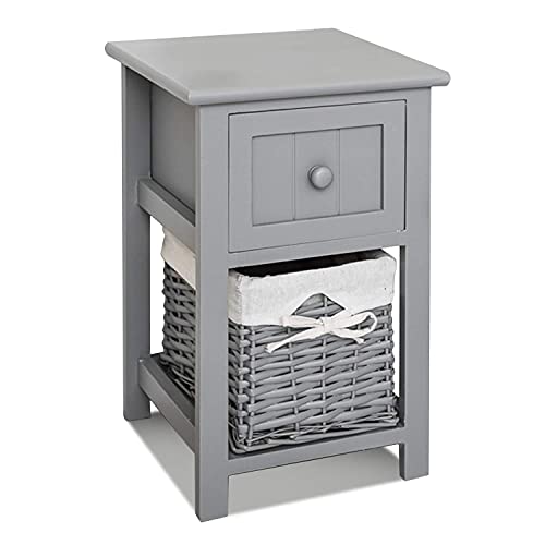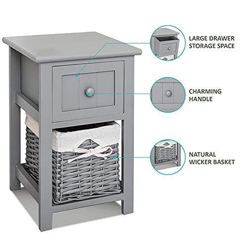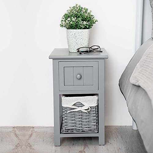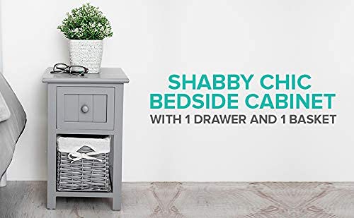 - FULLY ASSEMBLED - Bedside Cabinet comes with full assembled. Stylish compact bedside table with shabby chic design. A beautiful white bedside table that has 1 drawer and 1 wicker basket for storage. Perfect for bedrooms with limited space.