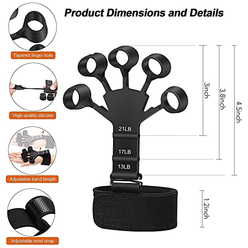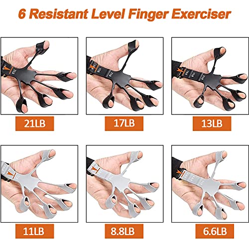 - 【Adjustable Resistance】 The silicone Guitar finger strengthener provides you with 6 levels of resistant levels, finger grip strengthener including 6.6LB, 8.8LB, 11LB, 13LB, 17LB, and 21LB. A suitable hand exerciser for men and women. You can improve your grip strength by gradually increasing the resistant level.