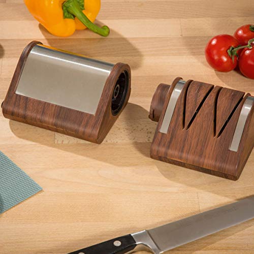 - Maintenance of your blades is done in 2 steps: - The 2 slots marked with 1 allow you to sharpen the left and right side of your blade for a perfect edge. - The 2 slots marked with 2 allow you to polish the left and right side of your blade for a flawless finish.