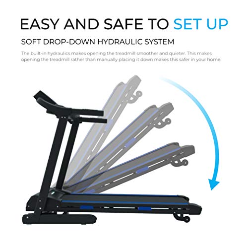 - There is auto incline function powered by hydraulics that is easily adjustable as well as adjustable speed from handlebar. The mobility wheels on the treadmill allow you to easily move the walking machine into place. Emergency stop key is provided to ensure your workout is safe