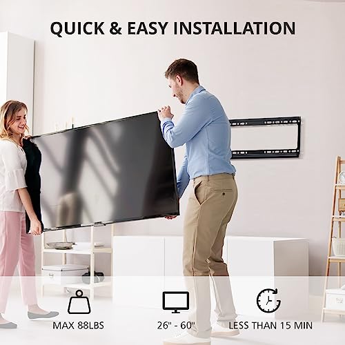- 【SAVES SPACE】Using a 26-60 inch tv wall bracket is not only efficient, but it saves you a ton of space. Mounting your TV on your wall or over the fireplace clears up your floor space, and eliminates clutter in your living room. This gives your entertainment area a cleaner, less cluttered atmosphere, and is especially beneficial for people living in small apartments, condos, and tiny