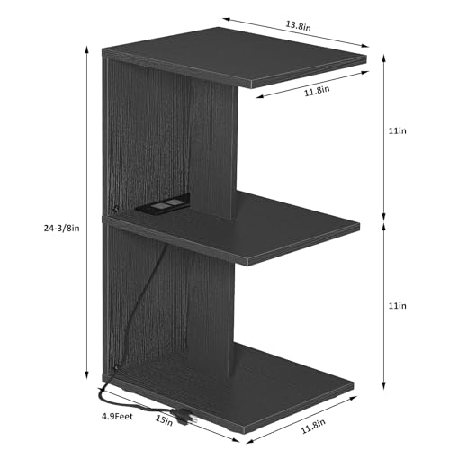 - 【Ideal Home Decoration】The size of this side table is 14.9"L x 11.8"W x 24.4"H, perfect for narrow spaces, 3-tier design can help store more necessities in living room, bedroom or office, side table equipped with the charging station can make your mobile phone, laptop, and desk lamp more convenient to charge, and you no longer have to worry about not finding a suitable charging port.