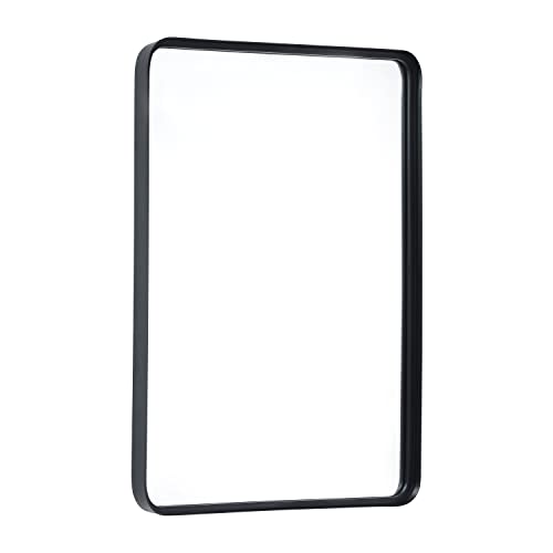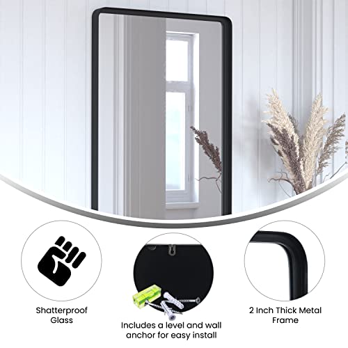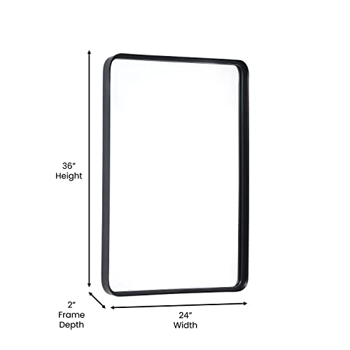 Flash Furniture Ava Deep Framed Wall Mirror for Bathroom, Entryway, Dining Room, & Living Room, Black, Metal Frame, 24"x 36"