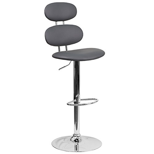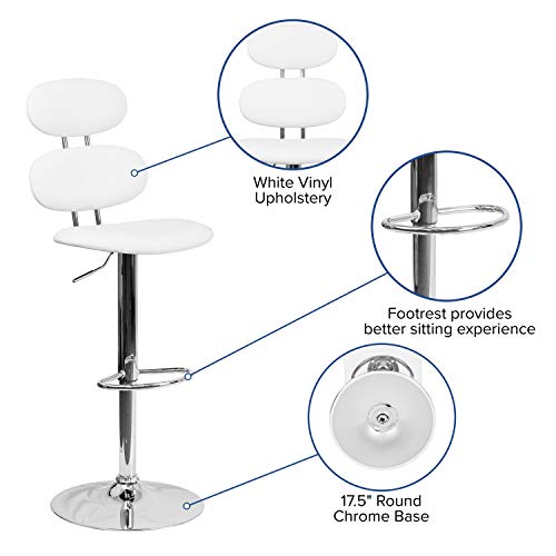 Flash Furniture Contemporary Vinyl Adjustable Height Barstool with Chrome Base, Metal, White, 55.88 x 44.45 x 38.1 cm