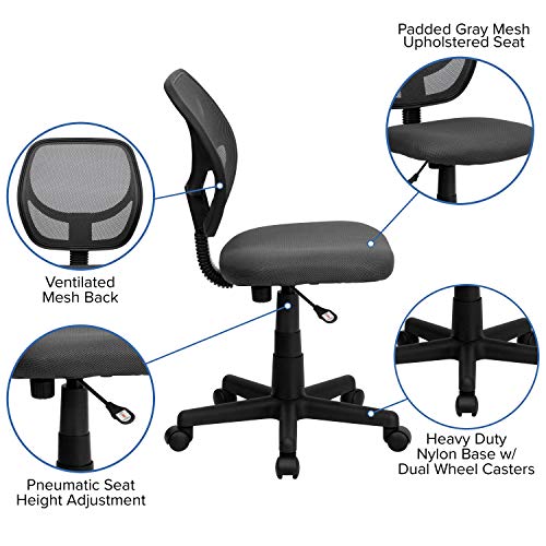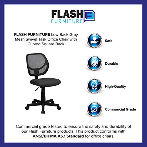 Flash Furniture Low Mesh Swivel Task Office Chair with Curved Square Back, Metal, Gray, Set of 1