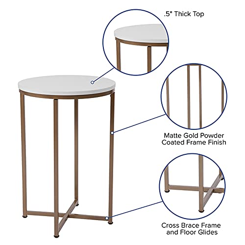Home Living Room Furniture Flash Furniture Residential Tables, Other, White/Matte Gold, 15.75″ W x 15.75″ D x 24″ H