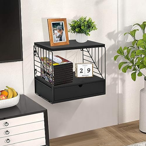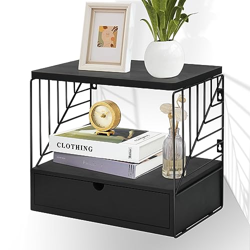 - ☘【Ideal Gift Idea&Perfect Service】-Black floating nightstand with drawer is an ideal gifts for Mother’s day, Thanksgiving, Christmas, housewarming, birthday and more, bringing an elegant and modern atmosphere to bedroom. Please do not hesitate if you have any questions or suggestions about the shelves for wall storage, just contact us firstly and we will reply as soon as possible within 24 hours.