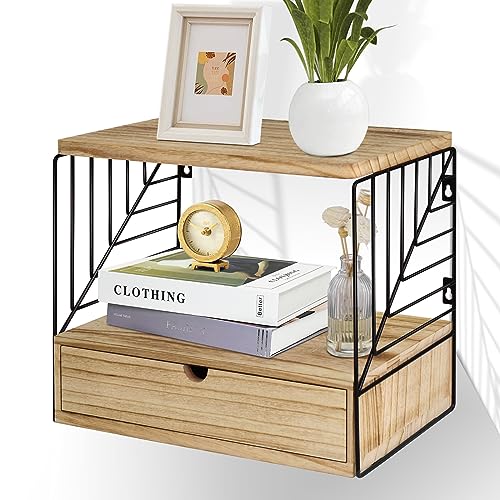 - ☘【2-Layer Bedside Shelf with Pull-out Drawers】Different from other floating shelves, our floating nightstand specially added a drawer design, the bottom layer can be used to store your more personal items, which is perfect for your daily needs. The increased storage space and open design make our bedside shelves more practical. With simple lines and compact design, I believe that everyone who receives this floating shelf will love it.