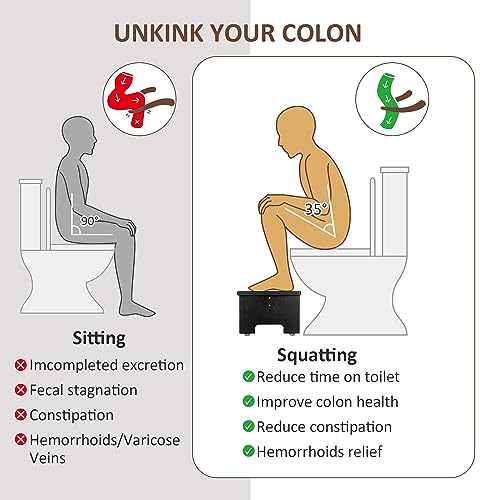 - Improve Your Colon Health - Our toilet poop stool for adults allows you to simulate a natural squatting posture, which aligns your colon and promotes efficient elimination. This reduces fatigue, prevents hemorrhoids and benefits your overall colon health. It’s recommended by professionals!