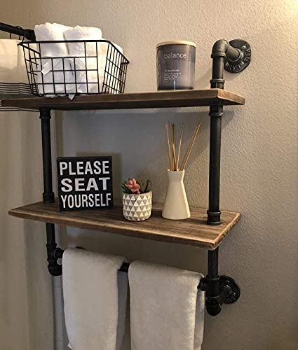 - 【Retro Style】:Iron pipes and reclaimed real wood composition in vintage style.Storage and decorations.It also be used outdoors.