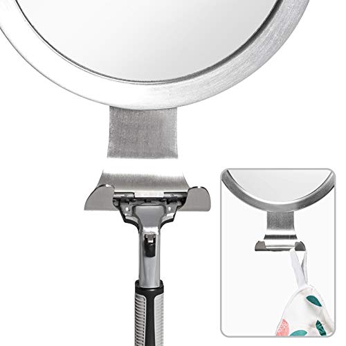 - 【Practical Design】Fog free shower mirror with razor holder hook and mirror size is 15 x 15 cm.Convenient shelf to place your razor,sponge ,tweezers,towels and so on.