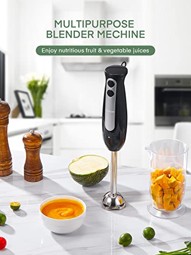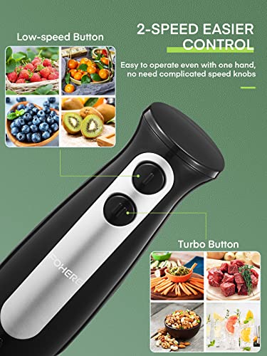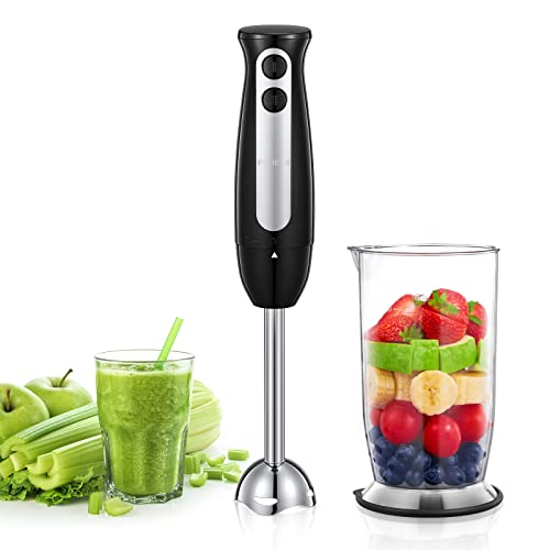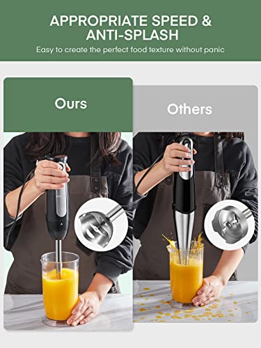 - 【2 Speeds Meet All Needs】With Speed (14000rpm-18000rpm)and speed (18000rpm-22000rpm) , this compact and portable hand blender can meet your needs for the variety of foods you want to make, such as baby food, smoothies, soups, sauces, juices, milkshake and much more.