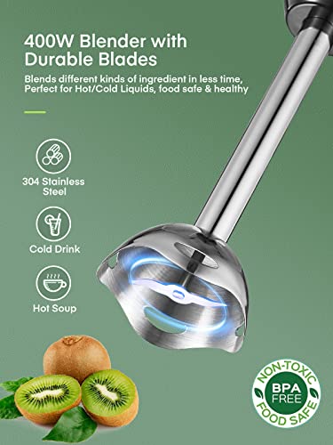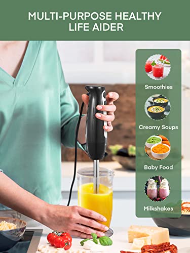 - 【2 In 1 Hand Blender】Including stick blender and 700ml beaker with Lid. Without complicated operations, you can perfectly mix all kinds of ingredients with one click. The ergonomically designed body with rubberized grip for a secure grip and comfortable blending, you can one-handed operation with ease.