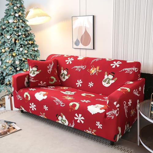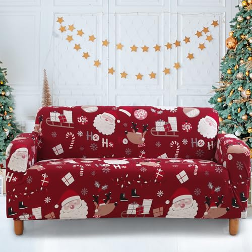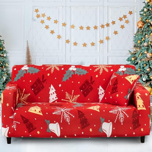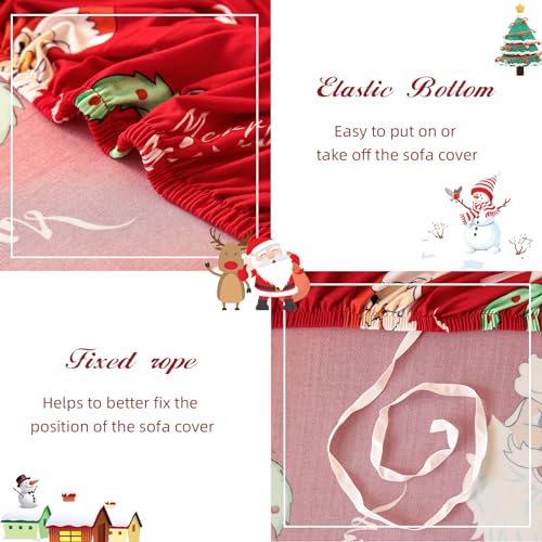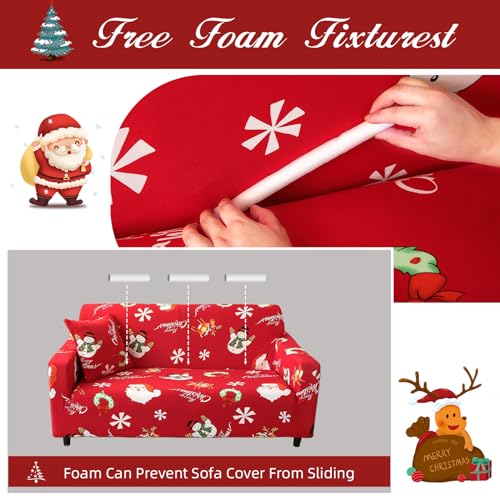 - ☃️Christmas Sofa Cover☃️Premium fabric - Highly elastic polyester spandex fabric provides the perfect wrap for your sofa. Complete with a non-slip elastic bottom, shoulder straps and premium non-slip foam sticks, the cover stays tight, won't wrinkle and won't shift after sitting or napping on the sofa.