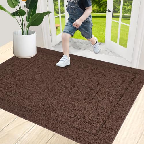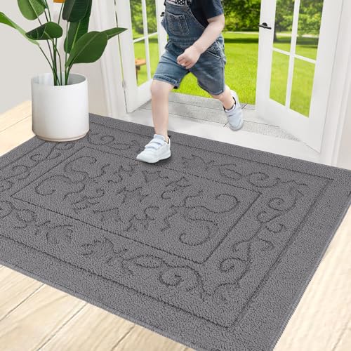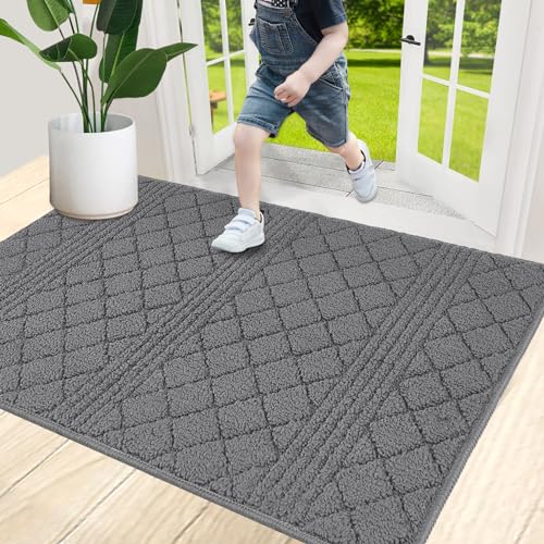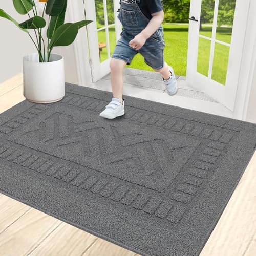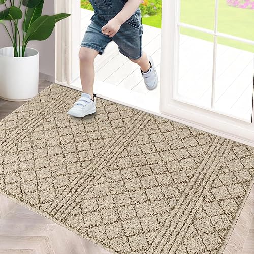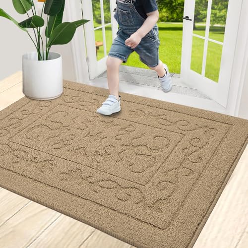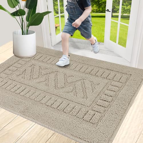 • 【NONSLIP & STAIN RESISTANT】Never worry about slipping or sliding on this non slip floor mats.This indoor door mats for entryway uses premium TPR non skid backing, which won't slip or scuff floors, provides safety and friendly for kids or pets even running through the home! The door rugs colour is not easy to get dirty, It fits very well with the simple and stylish home style, making the room more warm and comfortable. NOTE: THE INDOOR DOOR MAT MUST BE PLACED ON DRY SURFACE DURING USE.