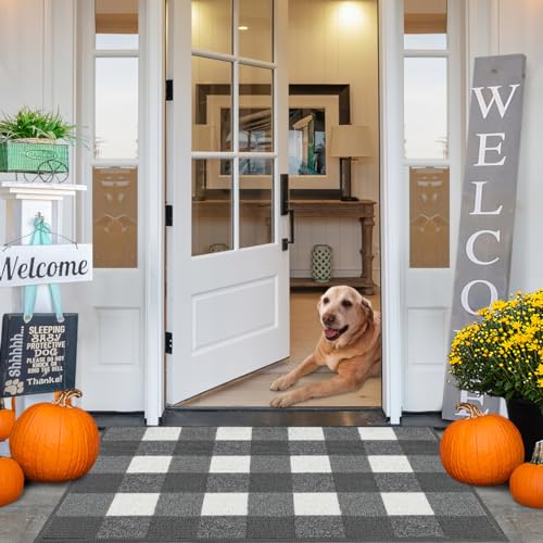 • 【MACHINE WASHABLE FOR BUSY HOME】Life is no longer messy with the washable door mats indoor. When our doormats gets dirty, just shake off outdoors, use a garden hose to rinse the door mat. For overall cleaning, you can toss it into the washing machine. After multiple times machine wash test, the solid rug for back door inside always looks its best. FONEYI entryway rug is a good choice for anyone with a busy lifestyle. Which is also ideal as a gift for your friends, parents, kids and family.
