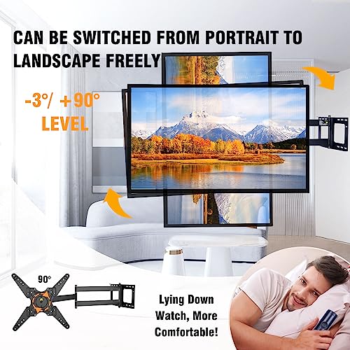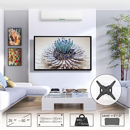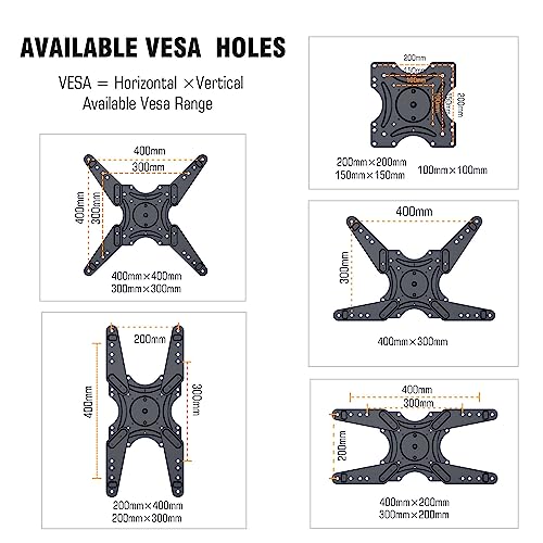 - 109cm Extra Long Arm TV/Monitor Mount: Fits most 26"-60" Flat/curve LCD LED OLED TVs and Monitor like Samsung,Vizio,Sony, Panasonic,TCL,Hisense,Toshiba, Sharp,LG,Westinghouse,Insignia, etc VESA patterns from 100x100mm up to 400x400mm, weighing up to 50kg,Arm extends 42.5" from the wall maximizing your vantage points from a variety of angles in multiple rooms.