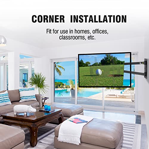 - Complete Range of Adjustment: Extends, articulates, tilts, swivels, levels and collapses on this long arm full motion TV mount bracket.it can be adjusted to fit your any rooms and ensure the best viewing angle, cable management is included.
