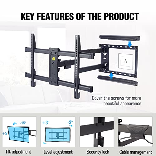 - Full Adjustment: Full motion,extends, articulates, tilts, swivels, levels and collapses on this Long arm Full Motion TV Bracket.it can be adjusted to fit your any rooms and ensure the best viewing angle, cable management is included.