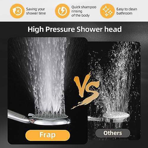 • [Premium Quality] This universal bath big shower head is made of high grade ABS constructed with the reinforced 1.5m stainless steel outer hose designed to withstand high pressure. As a result, the Frap hose won’t crack or split easily and guarantees long-lasting performance, especially suitable for hard water areas. Multi-layer plating chrome finish that works with any decorating style.