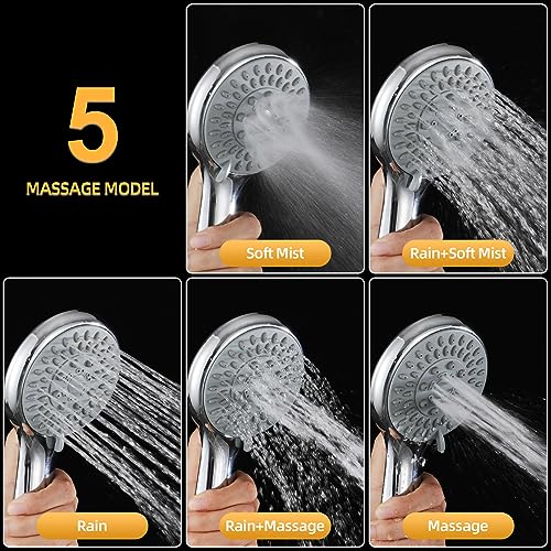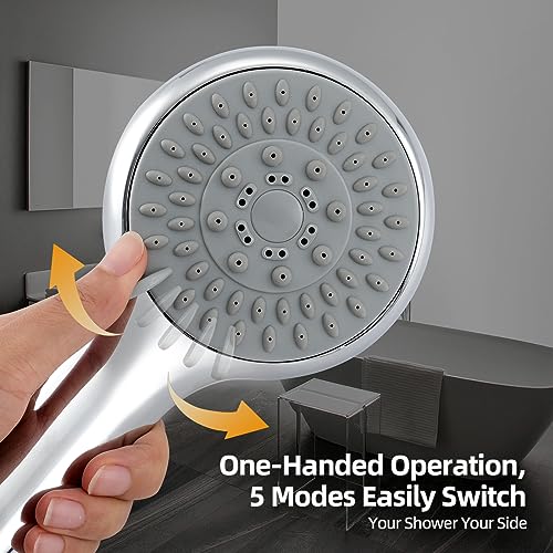 • [5 Spray Modes] 5 spray modes are available for this handheld showerhead. It can be adjusted between gentle spray to pressure boosting massage depending on your need. This power shower head with powerful rainfall mode is suitable for low water pressure. Allowing you to customize your shower and desired spray performance