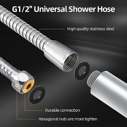 • [Universal Fitting] Frap high pressure shower heads and shower hose with G1/2 connector(20mm) universally fits for most UK standard showers. Simply screw it into place, easy installation without tools