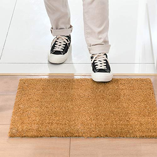 - ★High Quality: The doormat is made of 100% pure coconut coir, which is one of the strongest natural fibers in the world. PVC backing helps your mat lay flat and helps prevent your rug from sliding. Durable,thick(1.5CM)This doormat is made to last and to keep dirt out of your house. Unlike other thin and flat doormats, the thick coir fibres will thoroughly clean your shoes and suck up moisture.