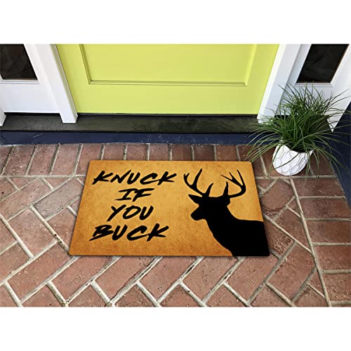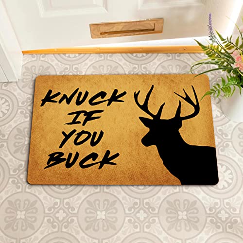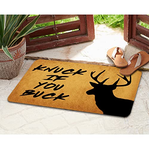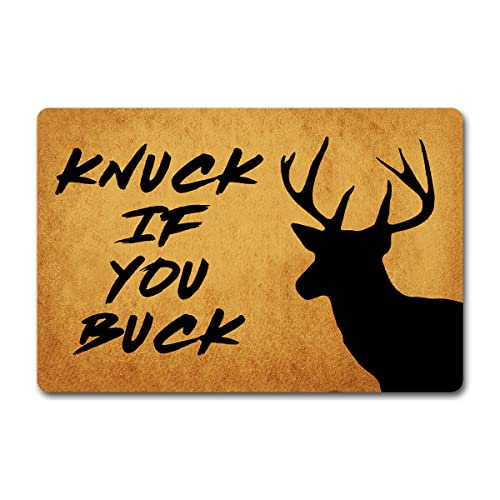 Funny Welcome Doormat with Rubber Back Knuck If You Buck Deer Head (23.7 in X 15.6 in) Personalized Welcome Mats For The Entrance Way Indoor Hous