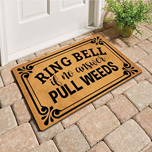 Funny Welcome Mat Monogram Rug Ring Bell If No Answer Pull Weeds Personalized Funny Home Decor Doormat Anti-Slip Rubber Welcome Mats Front Porch