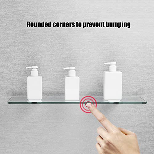 FVRTFT Bathroom Glass Shelf, Wall Mounted 8mm Tempered Glass Caddy Shelf, Rectangular with Polished Chrome Bracket, for Bathroom, Washroom Organi