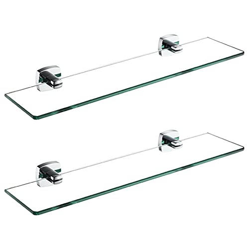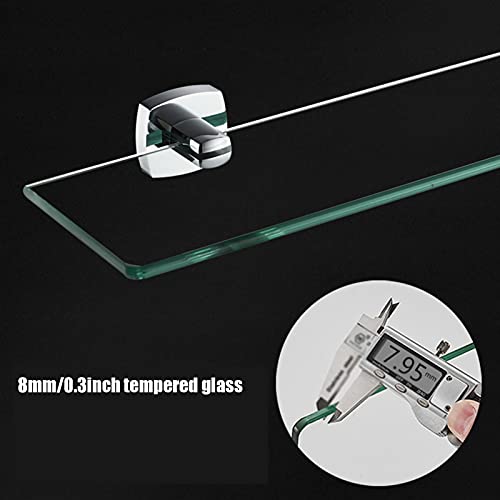 FVRTFT Bathroom Glass Shelf, Wall Mounted 8mm Tempered Glass Caddy Shelf, Rectangular with Polished Chrome Bracket, for Bathroom, Washroom Organi