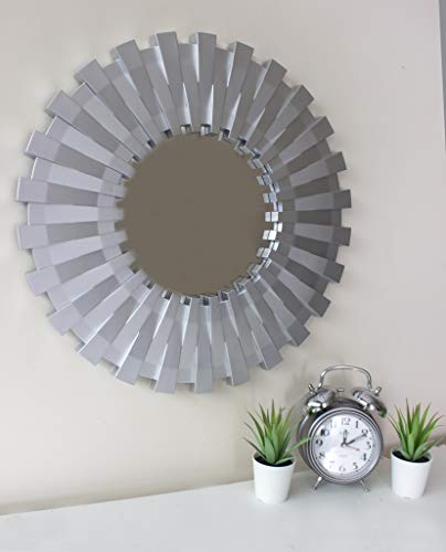 - CONTEMPORARY WALL MIRROR - Introduce a sophisticated flair to your living space with this upscale Round Sunburst Mirror Set in Silver Finish. Each sunburst mirror has a distinct Mid Century Modern flair.